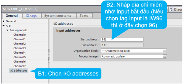 Bước 5: Đặt địa chỉ cho module analog, ở đây đặt IW96, thì nhập vào con số 96 cho module