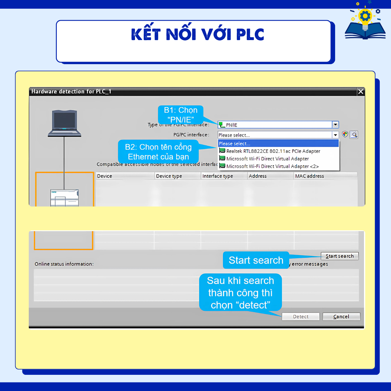 Kết nối Laptop với PLC bằng cáp Ethernet.